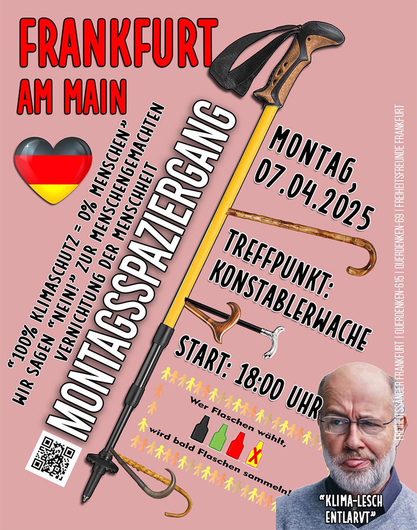 🕊 WELTWEITES FRIEDENSZEICHEN 🕊 Zum Osterfest setzen wir gemeinsam ein sichtbares Zeichen: für Frieden auf Erden – für alle Menschen, für alle Völker. Würdevoll, friedlich, hoffnungsvoll. Der Römerberg in Frankfurt wird ein Friedensmeer – komm dazu und bring viele Deiner Freunde mit! 📍 FRANKFURT AM MAIN · RÖMERBERG 🕑 13:00 Auftakt 🏃 15:30 Friedenslauf 🕔 17:00 Abschlusskundgebung Mit dabei (Musik & Redebeiträge): 🎼 Dieter Dehm 🎼 Corona Bavaria 🎤 Colette 🎤 Markus Böning und Songül 🎤 Supermann Kal 🎤 Major a.D. Florian D. Pfaff 🎤 Stephanie Tsomakaeva 🎼 Guy Dawson u.v.a. 🎁 Friedens-Ausstellungen & Aktionen: Freie Heidelberger & Danny (OF), Yvonne (FFM), Jörn (ODW) 👕 Tipp: Komm gern in weiß mit Friedensfahne. 🤝 Wir stehen zusammen – respektvoll, menschlich. Frieden ist unteilbar! „An den Frieden denken heißt an die Kinder denken.“ #Frieden #Ostern #Frankfurt #Römerberg #Friedenslauf #NieWiederKrieg #FriedenJetzt #machtFrieden t.me/friedenjetzt t.me/klartext_rheinmain | |