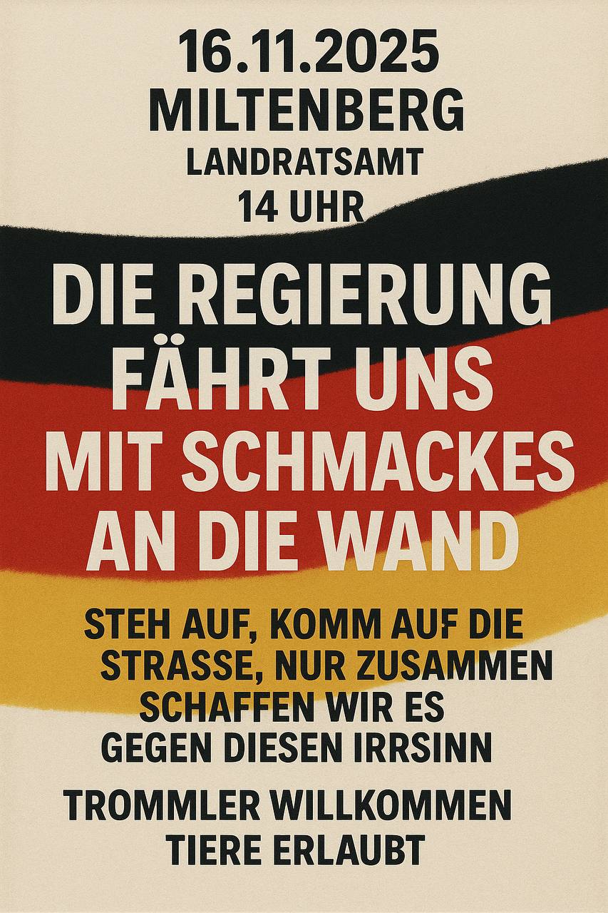Am Sonntag 16.11.2025 wieder um 14 Uhr sammeln in Miltenberg! Wir freuen uns auf euch Ankündigung: Letzte Demonstration in Miltenberg für dieses Jahr am 07.12.2025 mit Motto! | |